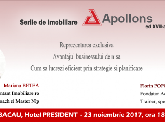 Va invitam la cea de-a XVII-a editie a Serilor de Imobiliare APOLLON, in BACAU in data de 23.11.2017 la Hotel … Read More